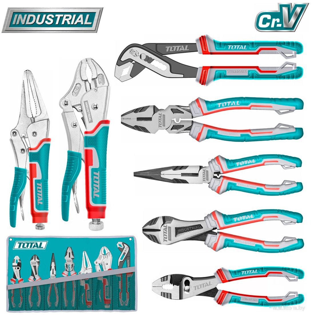| Комплектация | Клещи переставные 250 мм - 1 шт. Комбинированные плоскогубцы 240 мм - 1 шт. Длинногубцы 200 мм - 1 шт. Бокорезы 200 мм - 1 шт. Плоскогубцы с изогнутыми губками 250 мм - 1 шт. Зажим с фиксатором 225 мм - 1 шт. Зажим с фиксатором 200 мм - 1 шт. Сумка |