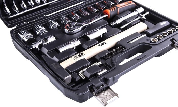 | Комплектация | - Головки торцевые 1/4" 6 граней: 8, 9, 10, 11, 12, 13 мм- Отвертка - держатель 1/4" 150 мм- Адаптер для бит 1/4"DR x 1/4"НDR- Биты: L = 25 мм PH1, PH2, PH3, SL3, SL4, SL5, SL6, Т10, Т15,Т20, Т25, Т27, Т30, Т40- Вороток Т - образный 1/4" 115 мм- Головки торцевые 1/2" 6 граней: 10, 12, 13, 14, 15, 17, 19, 22, 24, 27 мм- Свечные головки 1/2": 16, 21 мм- Трещотка 1/2" 72 зуба- Удлинитель 1/2" 125 мм- Кардан 1/2" 70 мм- Ключи шестигранные Г-образные: 1.5, 2, 3, 4 мм- Ключи комбинированные : 10, 12, 13, 14, 15, 17 мм- Молоток 300 г- Плоскогубцы комбинированные 175 мм- Переставные клещи 250 мм- Отвертки: PH2 x 38 мм, PH2 x 100 мм, PZ3 x 200 мм,SL6 x 38 мм, SL6 x 100 мм |