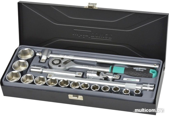 | Комплектация | - Головки 1/2" 6гр; 10,11,12,13,14,15,17,19,21,22,24,27,30,32 мм;- Трещотка 1/2" 36 зубов;- Удлинитель 1/2" 125, 250 мм;- Вороток 1/2" 300 мм;- Кардан шарнирный 1/2" 78 мм. |