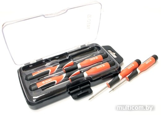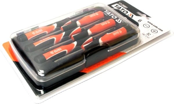 | Комплектация | - Отвертки с плоским шлицем (1.4х50 мм, 2.0х50 мм,2.4х50 мм) - 3шт- Отвертки типа PHILIPS (PH00x50 мм, PH0x50 мм, PH01x50 мм) - 3шт |