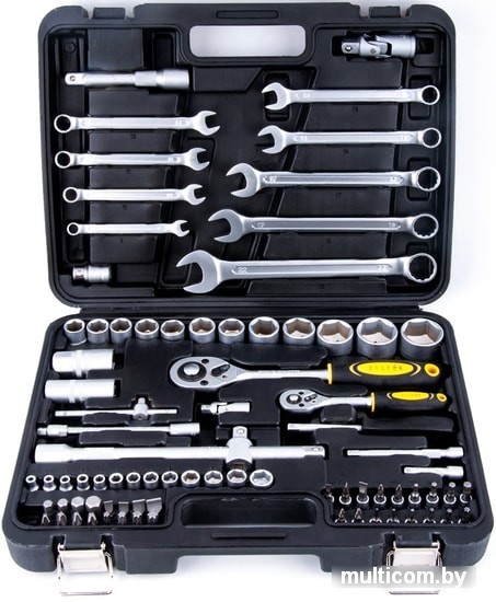 | Комплектация | - Головки 1/4": 4, 4.5, 5, 5.5, 6, 7, 8, 9, 10, 11, 12, 13, 14 мм.- Удлинитель торцовых головок 1/4": 2", 4".- Удлинитель гибкий 1/4": 6".- Шарнир карданный 1/2", 1/4".- Держатель бит 1/4".- Выдвижной Т-образный стержень 1/4".- Трещотка 1/2", 1/4".- Головки 1/2": 14, 15, 16, 17, 18, 19, 20, 22, 24, 27, 30, 32 мм.- Биты SL: 4, 5, 7; PH: 1, 2; HEX: 3, 4, 5, 6; T: 8, 10, 15, 20, 25, 30.- Удлинитель торцевых головок 1/2": 5", 10".- Головки свечные 1/2": 16, 21 мм.- Переходник для головок торцевых 1/2".- Переходник для бит 1/2"х8 мм.- Биты 8мм: SL7, 8, 10, 12; PH3, 4; PZ3, 4; HEX7, 8, 10, 12; T30, 40, 45, 50.- Комбинированные ключи 8, 10, 11, 12, 13, 14, 17, 19, 22 мм. |