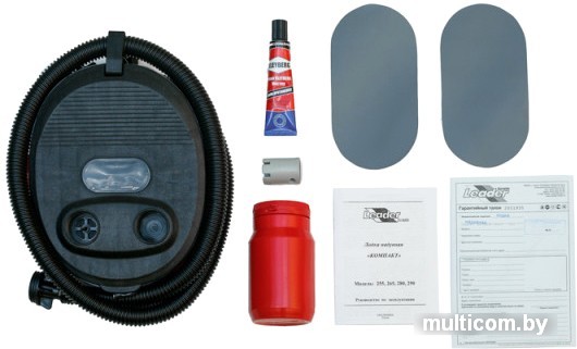 | Комплектация | Разъемные алюминиевые весла 140 см Фанерное сиденье (банка) на сдвижном крепеже 2 шт Помпа-насос 5 л Рем-набор Транспортная упаковка гермобаул ПВХ |