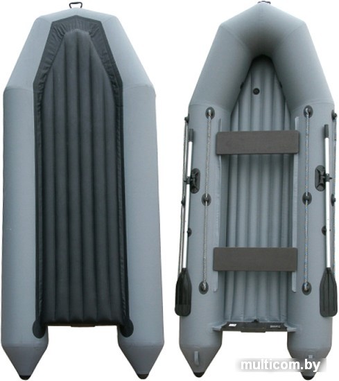 | Комплектация | - Разъемные алюминиевые весла 160 см; - Фанерное сиденье (банка) на сдвижном крепеже 2 шт; - Вклеенный надувной пол; - Помпа-насос 5 л Рем-набор; - Транспортная упаковка (сумка-конверт). |