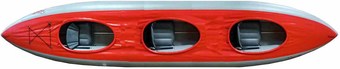 | Комплектация | - Оболочка байдарки; - Кильсон; - 3 надувных сиденья; - 3 подвесных спинки; - 3 разборных обруча; - Ремнабор в небольшой герме (заплатки, клей, переходник для насоса); - Транспортировочный мешок-упаковка. |
