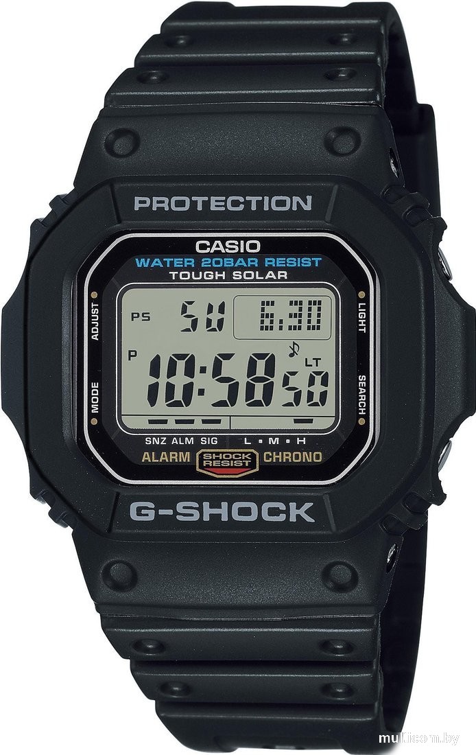 | Информация | Мужские наручные часы Casio G-Shock G-5600UE-1E. Точный кварцевый механизм с цифровой индикацией. Полимерный корпус надежно защищает часы от механических повреждений. Светодиодная подсветка. На циферблате отображается текущее число, месяц и день недели. Ударопрочная конструкция часов защищает от ударов и вибрации. Солнечная батарейка. Солнечная подзаряжающаяся батарейка обеспечивает питание часов для работы. Функция хронографа. Функция будильника. Индикатор запаса хода. Отображение текущего времени в основных городах и конкретных областях по всему миру. После настройки автоматический календарь всегда отображает точную дату. Отображение времени возможно в 12-часовом или 24-часовом формате. Полимерный ремешок. Натуральный полимерный материал является идеальным для изготовления ремешка благодаря своей чрезвычайной прочности и гибкости. Прочное, устойчивое к царапинам минеральное стекло защищает часы от повреждений. Часы являются водонепроницаемыми до 20 Бар. |