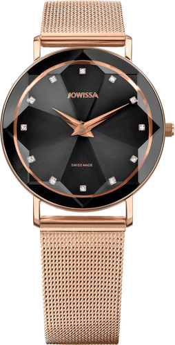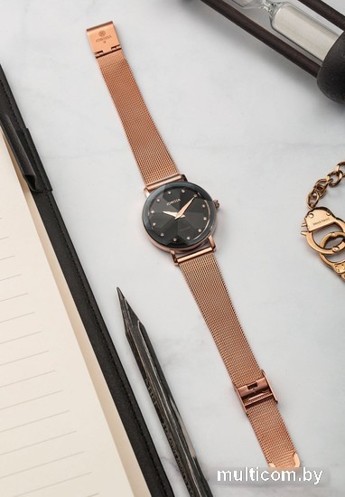 | Информация | ??Текст описания переведен при помощи искусственного интеллекта. ? Прекрасные женские часы черного и золотого цвета, Facet излучает гламурную ауру и легко обновляет ваш наряд своим украшением. Розовое золото 35 мм корпуса держит бриллиантово-резанный кристалл, который блестит отражая свет. Розовое золото мешковатого браслета элегантно контрастирует с черным циферблатом и часовыми маркерами со стразами. |