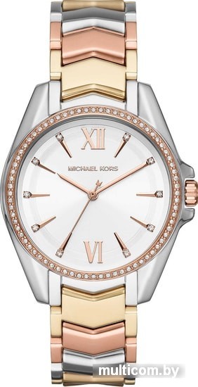 | Информация | Часы Whitney с трехцветным браслетом из шевронного звена украшены россыпью сверкающих кристаллов. Это идеальный вариант для офиса или вечернего наряда. Кварцевые стальные часы. Белый циферблат с метками в виде штрихов и римских цифр украшен 10 кристаллами. Золотистый безель также украшен паве из кристаллов. Заводная головка с защитой. Браслет с раскладывающейся застежкой. |