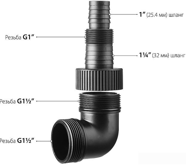 | Диаметр разъема соединения | 1 " (+ 1.25", 1.5") |