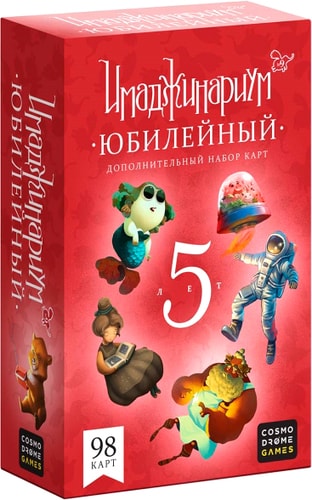 | Информация | Лет пять назад мы создали этот выпуск игры и в честь пяти лет существования «Имаджинариума» назвали его «5 лет». На этом креатив не закончился, мы продолжили оригинальничать и переделали его в дополнение к любой базовой игре! Собрали разные иллюстрации в одной колоде, чтобы вы придумывали самые оригинальные ассоциации.Что нового в дополнении?На юбилейных иллюстрациях теперь классическая обложка с парящим китом, чтобы можно было играть с другими версиями.Мы добавили на всех карточках значки, чтобы легко различать версии после игры. Полезно для тех, кто любит смешивать колоды.При этом здесь всё те же любимые карточки из предыдущей версии.Кто этот человек, который рисует все картинки?Над каждым выпуском «Имаджинариума» работает команда иллюстраторов. Эти талантливые художники знают всё о творчестве и оригинальности. У каждого свой почерк, поэтому картинки такие разноплановые.Что важно на иллюстрациях, куда обращать внимание при отгадывании?В каждой иллюстрации «Имаджинариума» есть цепляющие моменты. Это может быть не только главный герой на переднем плане, но и любая мелочь. Часто загадывают ассоциации на незаметные детали, так что советуем внимательнее рассматривать карточки при отгадывании.Что если мои ассоциации никто не понимает?В этой игре главное не гонка за победой, а эмоции: удивление, радость, волнение. Если ваши ассоциации слишком скрытые, другим игрокам нужно будет постараться и подключить всё воображение, чтобы понять их.Не усложняйте, расслабьтесь, настраивайтесь на креатив и получайте удовольствие от игры. |