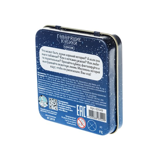 | Информация | Ребятишки любят слушать интересные истории, но больше всего им нравится придумывать истории самим. Настольная игра Говорящие кубики «Классик» поможет им в этом! В первых трёх вариантах игры дети выбирают кубики в соответствии со своим возрастом и бросают их. На основе выпавших значений игроки рассказывают свою историю, по желанию дополняя её описанием внешнего облика героев истории. С помощью наводящих вопросов взрослые помогают детям выстроить логику и последовательность новой истории до тех пор, пока ребенок не научится от начала и до конца выстраивать сюжет сам. Вариант «кубик-эмоция» отличается от предыдущих тем, что детям нужно будет придумать и рассказать историю, связанную с эмоцией, изображённой на выпавшем кубике (радость, страх, гордость). В середине игры кубик можно кинуть заново и получить новую эмоцию, которая повернёт ход истории в другое русло. |