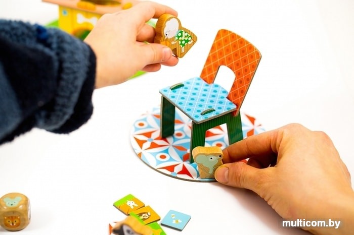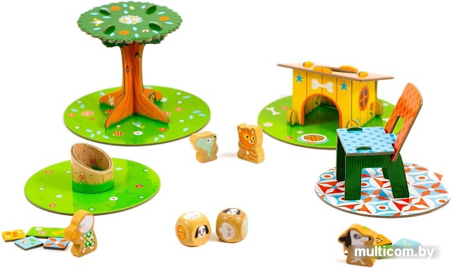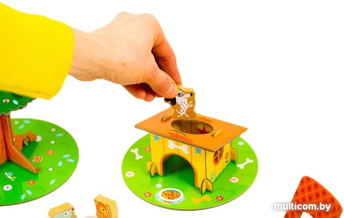 | Комплектация | - 1 дерево,- 1 будка для собачки,- 1 стул,- 1 мышиная норка,- 2 кубика,- 4 фишки - зверюшки. |