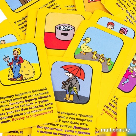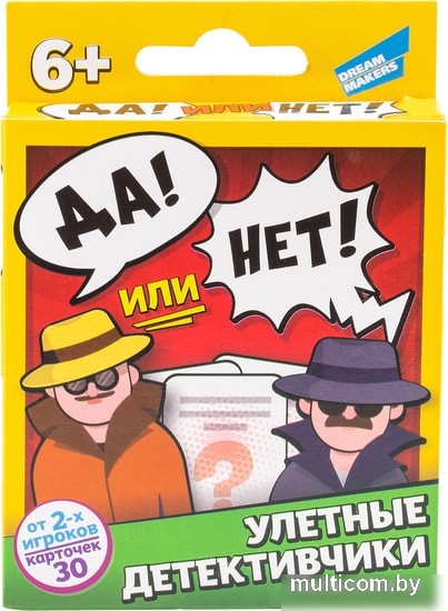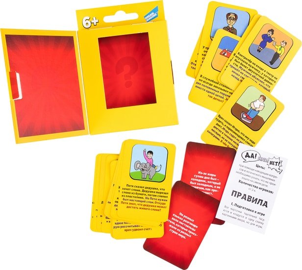 | Информация | "Да или Нет" – это сборник иллюстрированных загадок, в которых вы почувствуете себя настоящим детективом. Цель игры: при помощи наводящих вопросов и логического мышления узнать, что же произошло на самом деле. Ведущий берёт карточку и зачитывает историю, а другие игроки задают вопросы, на которые ведущий может отвечать только «Да» или «Нет». Проявите логику, интуицию и образное мышление, и найдите верный ответ! |