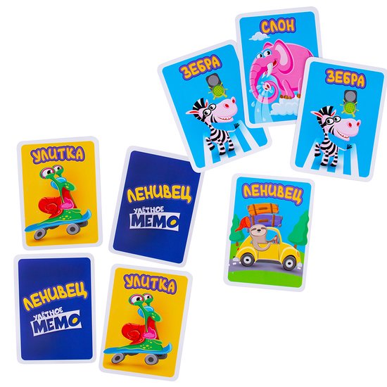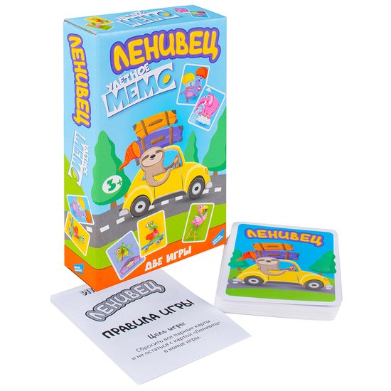 | Информация | Ленивец и Улётное мемо - 2 игры в 1 коробке! Здесь собраны самые увлекательные игры на внимательность и сообразительность для детей от 3-х лет. Игра №1 - Ленивец: раздайте все карты между игроками, а затем не глядя вытягивайте карту у соседа. Нашли парные карты? Выкладывайте их на стол! Проиграет тот, кто останется с непарной картой ленивца в конце игры! Игра №2 - Улётное мемо: запоминайте расположение карт и находите их пары. Победит тот, кто соберёт больше всех парных карт! Играйте там, где удобно! Игры развивают память, внимательность и ассоциативные навыки. |