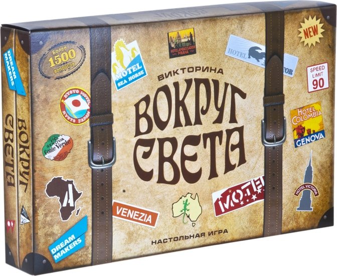 | Информация | Игра "Вокруг света" создана специально для любознательных! Для тех, кто любит путешествия, новые открытия и впечатления. Благодаря ей вы сможете побывать в 60 странах мира и узнать о них много нового и неожиданного. А чтобы путешествие было ещё интереснее, игрокам предлагается посоревноваться со своими единомышленниками. Игрокам предстоит проверить свою эрудицию, отвечая на множество вопросов по истории, культуре и традициям разных стран. Совершите увлекательное путешествие и расширьте свой кругозор вместе с игрой "Вокруг света" от Dream Makers! |
