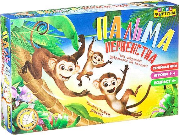| Информация | Игрокам нужно повесить обезьян на пальму. Чем больше обезьяны весят, тем больше шансов, что пальма обвалится, и обезьяны упадут в пасть крокодилу. Первый игрок, который успешно повесит всех своих обезьян на дереве, выигрывает игру. |