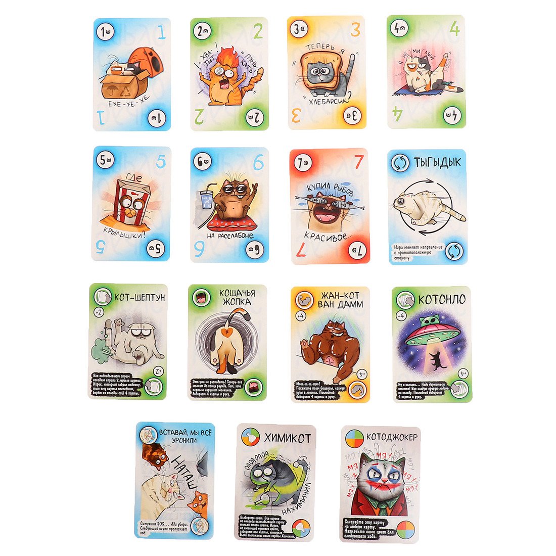 | Информация | - Настольная игра "Котярус" предназначена для 2 игроков и подходит для возраста от 12 лет и старше. - Игра "Котярус" подходит для детей и взрослых, идеально подходит для семейного времяпровождения. - В этой игре вам предстоит собирать карточки с изображениями различных котов, что делает игру увлекательной и интересной. - "Котярус" - отличный способ провести время в компании друзей или семьи, развивая логику и внимание. - Игра "Котярус" подходит для игроков всех возрастов, однако рекомендуется детям от 12 лет и старше. |