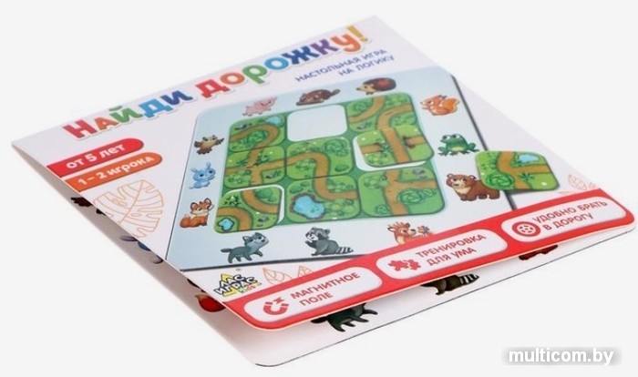 | Информация | В лесу живёт много зверят. Они дружат между собой, но редко видятся. Малышу предстоит помочь им исправить это. Цель игры — проложить тропинки так, чтобы персонажи встретились. Игра способствует развитию у ребёнка памяти, внимания и мелкой моторики. Игроки будут прокладывать дорожки между зверятами, обгонять соперников и побеждать. Если возникнут затруднения, всегда можно подсмотреть ответ в инструкции. Основа для деталей магнитная, благодаря небольшим размерам игру можно взять в дорогу. Рекомендовано детям старше 5 лет, рассчитано на 1–2 участников. |