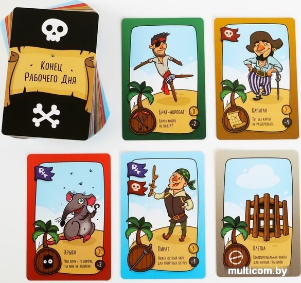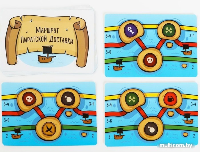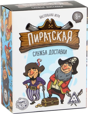 | Комплектация | - 82 карты заказа,- 8 карт «Маршрут пиратской доставки»,- 1 карта «Конец рабочего дня»,- 6 фишек игроков,- правила игры. |
