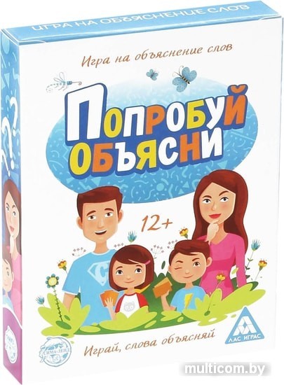 | Информация | Играем всей семьейВам кажется, что объяснить слово «аквариум» совсем просто? А если во время объяснения нельзя использовать слова «вода», «стекло», «рыбки» и «плавать»? Чтобы это сделать, нужно просто сказать иначе! Перед вами очень забавная семейная игра, которая позволит провести время здорово и интересно.Весёлая игра на объяснение словВытягивайте карточки и устно объясняйте слова, которые на них написаны. На это у вас есть 30 секунд! Во время игры нельзя использовать пять слов, перечисленных на карточке. Да-да, вам предстоит как следует пошевелить извилинами, чтобы объяснить слово, которое кажется на первый взгляд совсем простым. Угадавший получает карту, а выигрывает тот, кто наберет их больше.Берем игру с собой!Благодаря компактному размеру это развлечение можно взять куда угодно. Играйте в дороге, дома и в гостях! |
