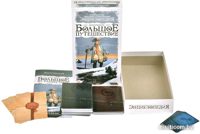 | Информация | Дополнение "Большое путешествие" содержит 3 модуля для игры "Энциклопедия", с помощью которых вы можете сделать партии ещё более увлекательными! Карты легендарных животных позволят вам отправиться на поиски самых странных в мире существ Новый набор карт экспертов с уникальными бонусами откроет множество стратегических возможностей Карты событий поведут вас навстречу новым испытаниям. Внимание! Это дополнение. Для игры вам потребуется базовая версия "Энциклопедия". |