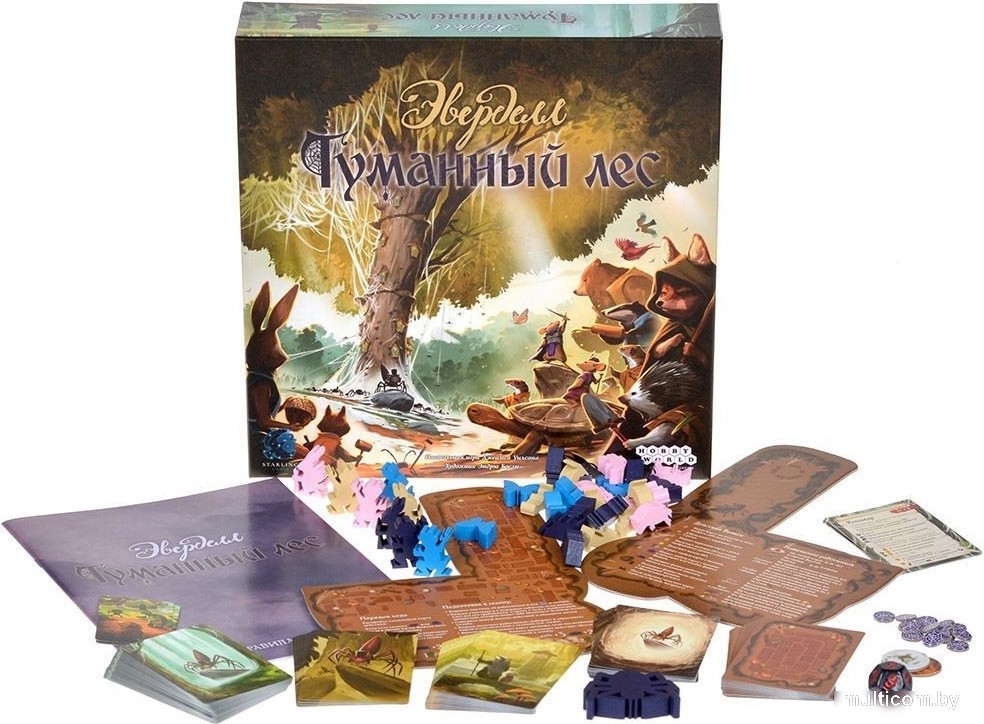 | Комплектация | 23 карты существ и сооружений 79 карт Вивьен 4 карты способностей 26 фишек работников 4 фишки послов-лягушек 4 фишки зайцев-исследователей Фишка Вивьен 12-гранный кубик 2 планшета Вивьен/игроков 2 жетона сезонов 14 жетонов паутины Правила дополнения |