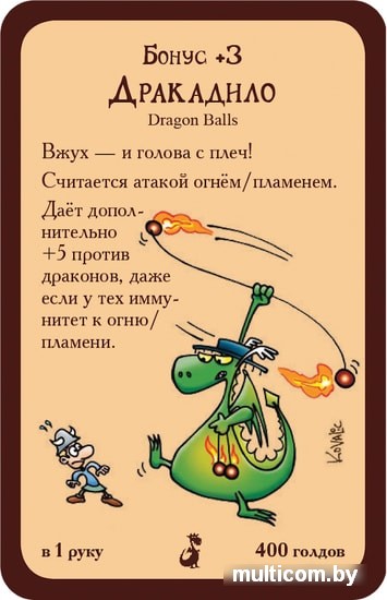 | Информация | Помнишь Плутониевого дракона, чьё подземелье ты разорил на прошлой неделе? Так вот, он привёл друзей. Зубастых, крылатых, огнедышащих друзей. И все — от милого Дракослика до грозного Драгулы — знают не понаслышке, как отжимать у тебя уровни и стеречь сокровища. Ну что, манчкин, готовь отряд дварфов и хафлинга-наёмничка — тебя ждут горячие деньки!Внимание! Это не самостоятельная игра, а дополнительный набор карт.Для игры требуется базовый "Манчкин". |