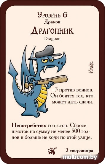 | Информация | Драконов много не бывает — решили драконы и пригнали себе в помощь всю родню: драконесс в элегантных платьях, необстрелянных птенцов, близняшек-драконяшек и даже дальних славянских родичей-горынычей. Если тебе всё ещё милы запретные сокровища, придётся замочить всю эту хвостатую братию. Как? Ты ж манчкин. Копьё в зубы, "скорпион" на плечи — и вперёд! Внимание! Это не самостоятельная игра, а дополнительный набор карт. Для игры требуется базовый "Манчкин". |