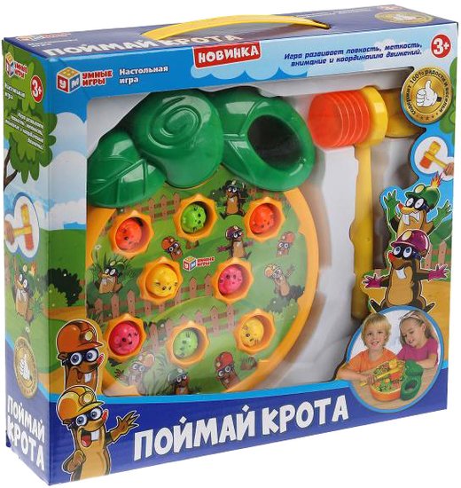 | Информация | Данная игра является настольной версией знаменитой аркадной игры «Ударь крота». Суть игры в том, чтобы успеть быстро ударить выделенного подсветкой крота на поле. |