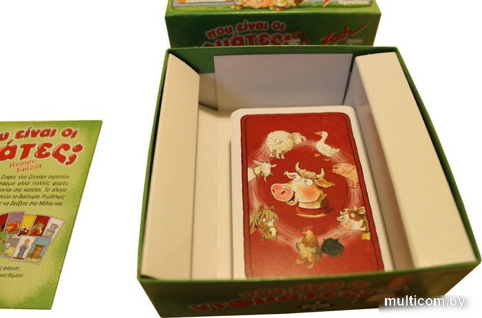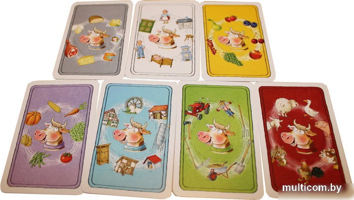 | Комплектация | - 7 тематических карт с фоном 7 разных цветов;- 49 фермерских карт с фоном 7 разных цветов;- правила игры на русском языке отдельно;- коробка. |