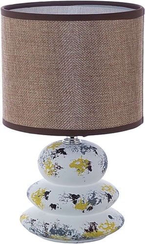Информация | Настольная лампа выполнена из текстурированных материалов белой расцветки. Подходит для освещения и дополнения спальни и гостиной. Абажур коричневого цвета мягко рассеивает свет по комнате. Для удобства использования выключатель расположен на шнуре. |