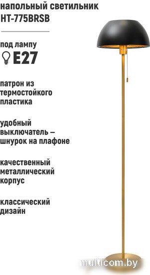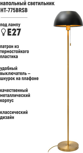 Информация | ? Торшер ArtStyle HT-775BRSB имеет классический дизайн. ? Корпус изготовлен из качественного металла. ? Источник света - лампа с цоколем Е27. ? Удобный выключатель - шнурок на плафоне. |