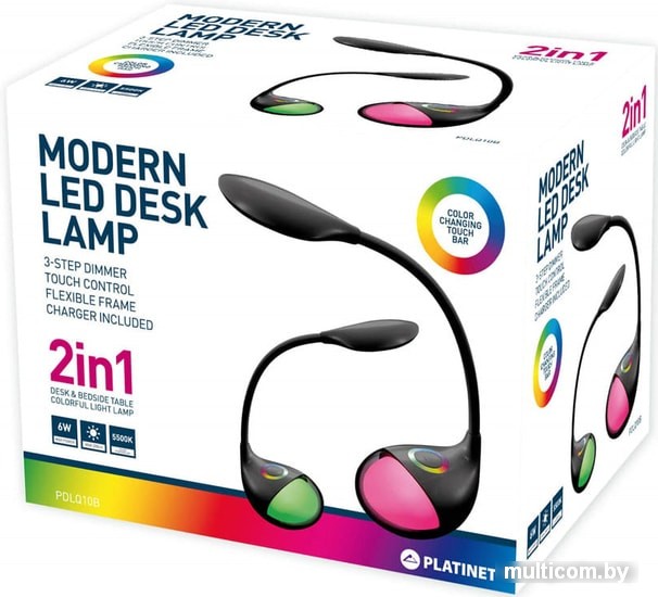 Информация | Cветильник оснащен эргономичной сенсорной панелью с регулируемой яркостью основного света и возможностью выбора одного из 256 цветов RGB в основании (функция ночника). |