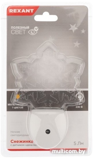 Информация | Светодиодный ночник REXANT СНЕЖИНКА ХАМЕЛЕОН предназначен для освещения бытовых помещений, коридоров, спален и санузлов в темное время суток. Благодаря мягкому разноцветному попеременному свечению (7 цветов) создает уют и комфорт в помещении. Выполнен из качественного белого пластика. Светодиодное освещение служит гораздо дольше обычных ламп и значительно сокращает энергопотребление. Датчик освещенности автоматически отключает светильник в светлое время суток и включает при недостаточной освещенности, что позволяет экономить электричество. |