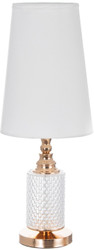 Информация | ??Текст описания составлен при помощи искусственного интеллекта. - Прикроватная лампа Risalux Люсон 9149623 - идеальное дополнение к интерьеру вашей спальни или жилой комнаты. - Стильная ар-деко и классический дизайн делают эту лампу привлекательным элементом декора. - Декорирована хрустальными вставками, которые придают ей изысканный вид. - Направленность света вверх, вниз и в сторону обеспечивает комфортное освещение в любое время суток. - Включение осуществляется при помощи кнопки на шнуре, что делает использование лампы удобным. - Материал каркаса - металл и стекло, а плафон выполнен из текстиля и стекла, что придает лампе изысканный вид. - Стойка неподвижная, обеспечивая надежную устойчивость. - Вес лампы составляет 0.89 кг, а ее размеры - ширина 22 см, высота 56 см, глубина 22 см. - Лампа оснащена цоколем E27 и предназначена для использования лампочек максимальной мощностью 40 Вт. - Идеально подходит для размещения на ночном столике или тумбочке рядом с кроватью. |