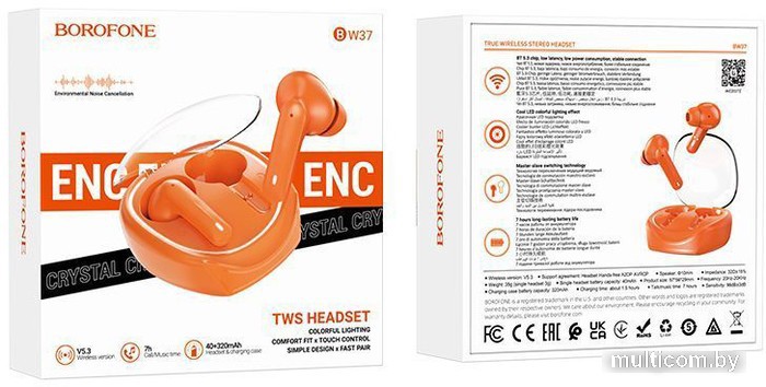 | Цвет зарядного кейса | оранжевый, прозрачный |