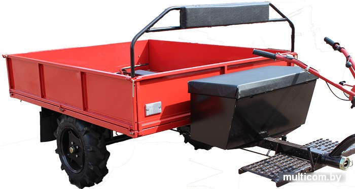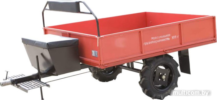 | Информация | Предназначен для перевозки различных грузов. Прицеп к мотоблоку МТЗ Беларус может эксплуатироваться при температуре окружающей среды от -30 °С до +40 °С. Можно использовать для перевозки различных сыпучих, длинномерных, штучных грузов, любых грузов общей массой не более 300 кг. Материал кузова — сталь, а раскладываемый борт способствует размещению грузов больших габаритов. |
