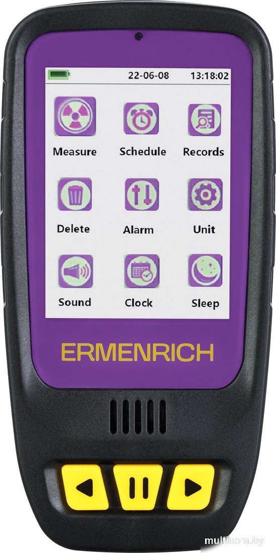 | Информация | - Дозиметр Ermenrich Ping RD40 предназначен для измерения гамма-, бета- и рентгеновского излучения в различных средах: воздухе, воде, продуктах питания и предметах обихода. Счетчик Гейгера-Мюллера быстро определяет уровень излучения в диапазоне от 0,08 мкЗв до 50 мЗв за менее чем 10 секунд. В случае обнаружения опасно повышенной дозы, прибор подает звуковой или световой сигнал. - Прибор работает от литиевого аккумулятора, который обеспечивает до 14 дней непрерывной работы, что позволяет использовать его без перерыва. Индикатор уровня заряда подскажет, когда необходимо подзарядить батарею. - Все данные отображаются на цветном ЖК-экране, где одновременно можно увидеть текущую, среднюю и суммарную дозу, а также время, дату и уровень заряда батареи. В памяти устройства можно сохранить до 10 предыдущих измерений. Компактный корпус с удобно расположенными кнопками легко помещается в ладони и управляется одной рукой. - Основные особенности: - Измерение гамма, бета и рентгеновского излучения - Два типа сигналов: звуковой и световой - Цветной ЖК дисплей с кнопочным управлением - Две недели непрерывной работы - Запись до 10 измерений - Комплектация включает: - Дозиметр - USB-кабель - Инструкция по эксплуатации и гарантийный талон |