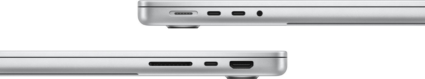 | Информация | - Ноутбук MacBook Pro с новой 12-мегапиксельной камерой Center Stage, портами Thunderbolt 5 для моделей на базе чипов M4 Pro и M4 Max, а также опцией антибликового покрытия nano-texture, становится еще более мощным и продвинутым устройством. Apple представила обновленный MacBook Pro, работающий на чипах семейства M4: M4, M4 Pro и M4 Max, которые обеспечивают значительно более высокую производительность и расширенные возможности. Ноутбук создан для работы с системой Apple Intelligence — персональной интеллектуальной системой, преобразующей работу, общение и творческое самовыражение пользователей при сохранении их конфиденциальности. Теперь доступен в черном и серебристом корпусах, а 14-дюймовая модель оснащена высокоскоростным чипом M4 и тремя портами Thunderbolt 4. - Чипы семейства M4, созданные по новейшему 3-нанометровому технологическому процессу, являются самой передовой серией процессоров для персональных компьютеров. Они обеспечивают выдающуюся однопоточную производительность с самым быстрым в мире CPU и впечатляющую многопоточную производительность для самых сложных задач. Сочетание ускорителей машинного обучения в процессоре, продвинутого GPU и более быстрой нейронной системы позволяет Apple silicon обеспечивать невероятную мощность для работы с ИИ. В каждой модели реализована более быстрая унифицированная память с увеличенной пропускной способностью, что обеспечивает плавную работу с крупными языковыми моделями и другими сложными проектами непосредственно на устройстве. Высокая энергоэффективность чипов M4 гарантирует длительное время работы — до 24 часов от одного заряда. - Новый MacBook Pro с 14-дюймовым экраном на чипе M4 станет отличным выбором для предпринимателей, студентов и творческих специалистов. Он оснащен более мощным 10-ядерным CPU с четырьмя производительными и шестью энергоэффективными ядрами, а также 10-ядерным GPU с самой передовой графической архитектурой Apple. Стартовая модель имеет 16 ГБ унифицированной памяти с возможностью расширения до 32 ГБ и пропускной способностью до 120 ГБ/с. Производительность M4 позволяет ноутбуку работать в 1,8 раза быстрее, чем MacBook Pro 13" на M1 при таких задачах, как редактирование изображений высокого разрешения. Для более требовательных процессов, таких как рендеринг сложных сцен, MacBook Pro на M4 работает до 3,4 раза быстрее. Neural Engine, который более чем в 3 раза производительнее, чем на M1, обеспечивает высокую эффективность работы с функциями Apple Intelligence и другими задачами, связанными с ИИ. Модель с M4 поддерживает подключение двух внешних мониторов высокого разрешения, а также имеет три порта Thunderbolt 4 для подключения различных периферийных устройств. - MacBook Pro включает уникальную опцию экрана nano-texture, что значительно снижает блики и отражения в условиях яркого освещения. В таких условиях яркость SDR-контента на экране может достигать 1000 нит, а контент HDR — до 1600 нит, создавая качественные условия для работы на открытом воздухе. - Также в MacBook Pro установлена новая 12-мегапиксельная камера Center Stage, которая обеспечивает улучшенное качество видео в условиях сложного освещения. Функция Center Stage автоматически удерживает пользователя в центре кадра во время видеозвонков, что делает их еще более захватывающими. Камера также поддерживает Desk View, который добавляет новое измерение к видеозвонкам. Система из шести динамиков с поддержкой Spatial Audio и студий