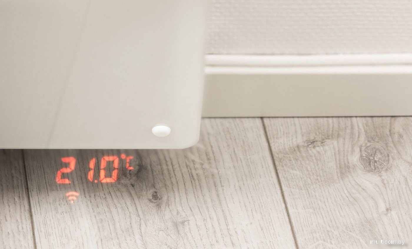 | Информация | - Электрический конвектор с передней стеклянной панелью для обогрева комнаты или небольшого помещения. - Оснащён встроенной системой управления (Wi-Fi) для удалённого управления с мобильных устройств. - Заданная температура отображается на полу под конвектором. - Конвектор укомплектован 1.5 м кабелем со штепсельной вилкой. - Ударопрочные боковые поверхности корпуса. - Простая установка с помощью кронштейна и четырех отверстий на стене. |