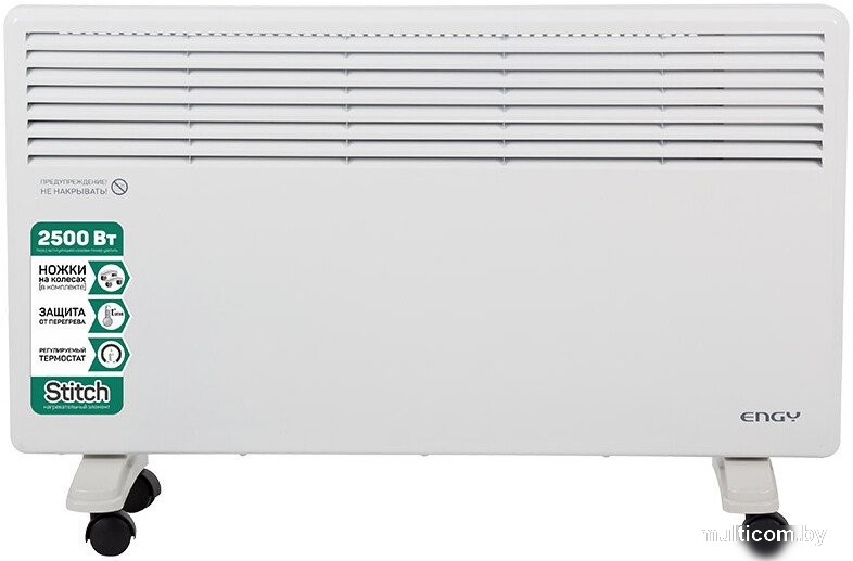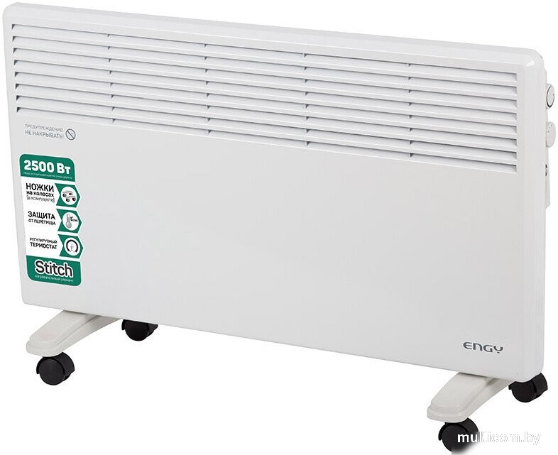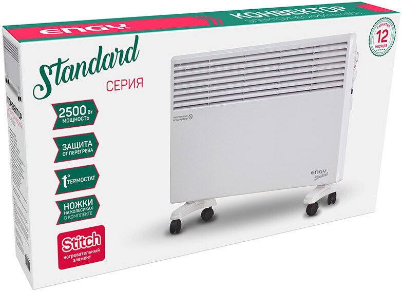 | Информация | -Ключевые характеристики Электрический конвектор мощностью 2500 Вт идеально подходит для обогрева помещений площадью до 30 м2. Оснащён игольчатым нагревательным элементом, работает от сети 230В и имеет класс электрозащиты I. Корпус выполнен в современном дизайне, подходит для размещения как на стене, так и на полу. -Преимущества и отличия Модель отличается наличием защиты от перегрева, регулируемым термостатом и возможностью выбора мощности обогрева (1250 или 2500 Вт). В комплекте предусмотрены ножки на колёсиках для удобного перемещения. Световой индикатор работы повышает удобство эксплуатации. -Практичность Для управления используется механический регулятор, позволяющий быстро и просто настроить температуру. Настенное и напольное размещение обеспечивает универсальность монтажа, а компактные размеры делают устройство удобным для установки в различных помещениях. -Уникальность В конструкции применяется нагревательный элемент типа Stitch, что обеспечивает бесшумную работу и высокую экономичность. Обогреватель экологичен и не сушит воздух, что особенно актуально для жилых и офисных пространств. Читать дальше |