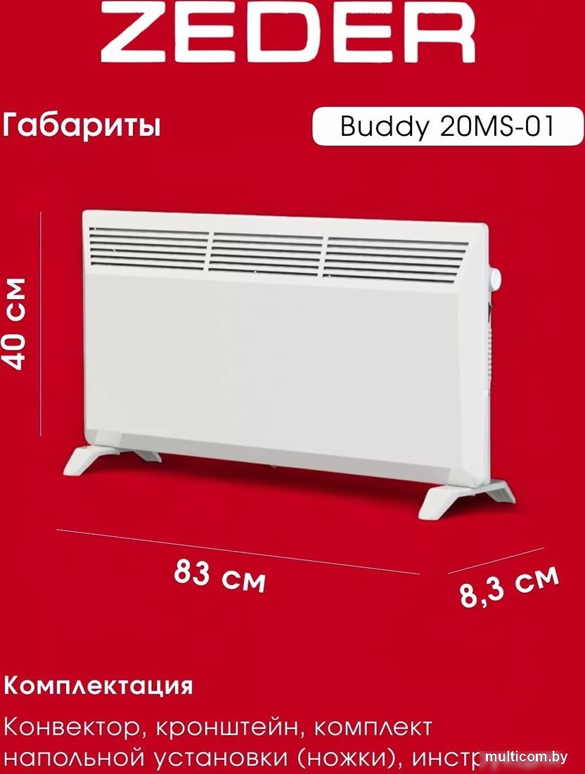 | Информация | - Конвектор Zeder 20MS-01 – это современное решение для эффективного и быстрого обогрева помещений площадью до 25 м?. Благодаря использованию игольчатого (стич) нагревательного элемента устройство практически мгновенно создает комфортную температуру даже в самые прохладные дни. - Простое механическое управление и наличие термостата делают эксплуатацию интуитивно понятной, а также позволяют поддерживать необходимый уровень тепла без лишних настроек. Работает от стандартной электросети с напряжением 230В, не требует сложного подключения и готов к использованию сразу после установки. - В комплекте предусмотрены опоры для напольной установки и кронштейны для настенного монтажа, что дает гибкость выбора способа размещения под ваши потребности. Элегантный белый цвет корпуса органично вписывается в любой интерьер, добавляя помещению современный вид. |