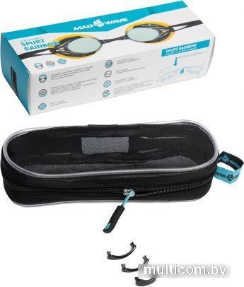| Информация | Очки SPURT RAINBOW от Mad Wave — прекрасный выбор для частых тренировок в бассейне. Превосходная посадка, обеспеченная высоким обтюратором и двойным силиконовым ремешком, повысит комфорт в использовании и исключит попадание воды в глаза. Линзы Rainbow с защитой от ультрафиолета и покрытием от запотевания Антифог. 4 сменные носовые перемычки. |