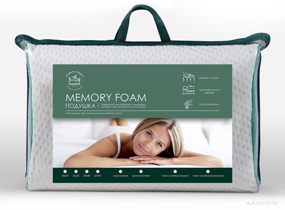 | Информация | - Подушка с эффектом памяти разработана профессионалами для крепкого и здорового сна. - Главное преимущество этой подушки - подушечный блок из вязкоэластичного пенополиуретана, который подстраивается под форму тела и запоминает ее. - Анатомический эффект обеспечивает правильное положение позвоночника, улучшает кровоснабжение головного мозга и снимает напряжение с мышц шеи и плеч. - Подушка гипоаллергенна и выполнена из экологически чистых материалов, с чехлом из трикотажа. - Легка в уходе и хранении: чехол можно стирать, а внутренний подушечный блок протирать влажной тряпкой и сушить естественным путем. - Избегайте прямых солнечных лучей. |