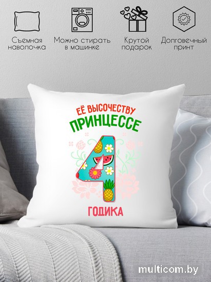 Декоративная подушка Print Style Ее высочеству принцессе 4 годика 40x40plat79