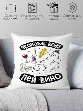 Декоративная подушка Print Style Экономь воду, пей вино 40x40plat244