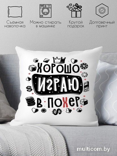 Декоративная подушка Print Style Хорошо играю в похер 40x40plat253 (40x40 см)
