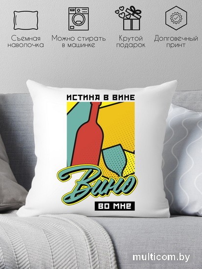 Декоративная подушка Print Style Истина в вине, вино во мне 40x40plat205 (40x40 см)