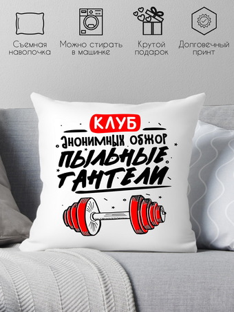 Декоративная подушка Print Style Клуб анонимных обжор - пыльные гантели 40x40plat243 (40x40 см)