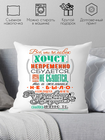 | Информация | Подушка сувенирная с печатью. Хороший и недорогой подарок на любой праздник. Будь то день святого валентина, день рождения, 8 марта или 23 февраля. Размер 40х40 см, наполнитель холлофайбер. Наволочка съемная на молнии — можно стирать в стиральной машине при температуре не превышающей 40 градусов. Печать термотрансферная. Печать не стирается. |