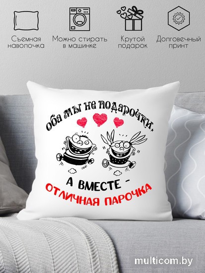 Декоративная подушка Print Style Оба мы не подарочки, а вместе отличная парочка 40х40hod23